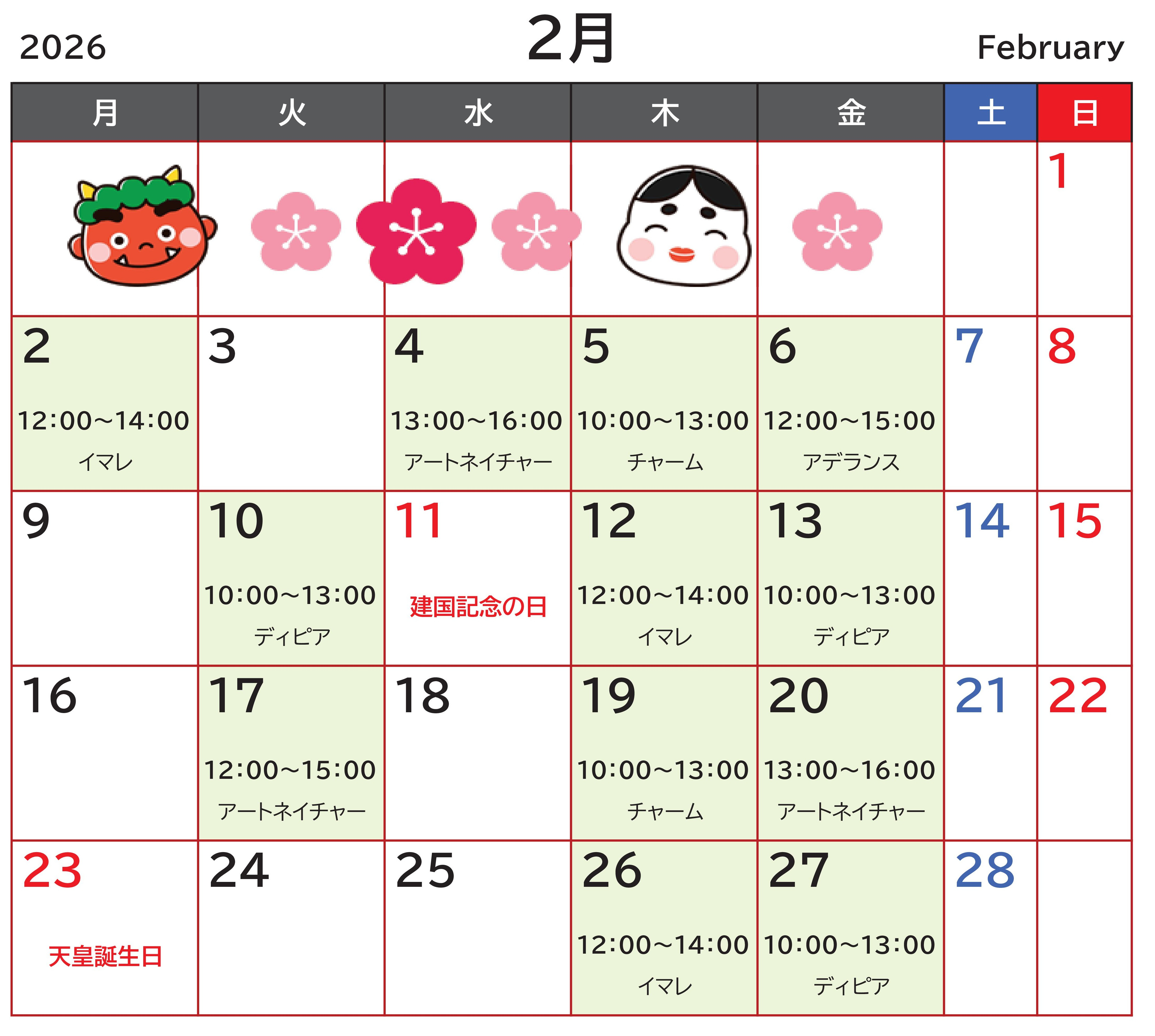 開室カレンダー参照
