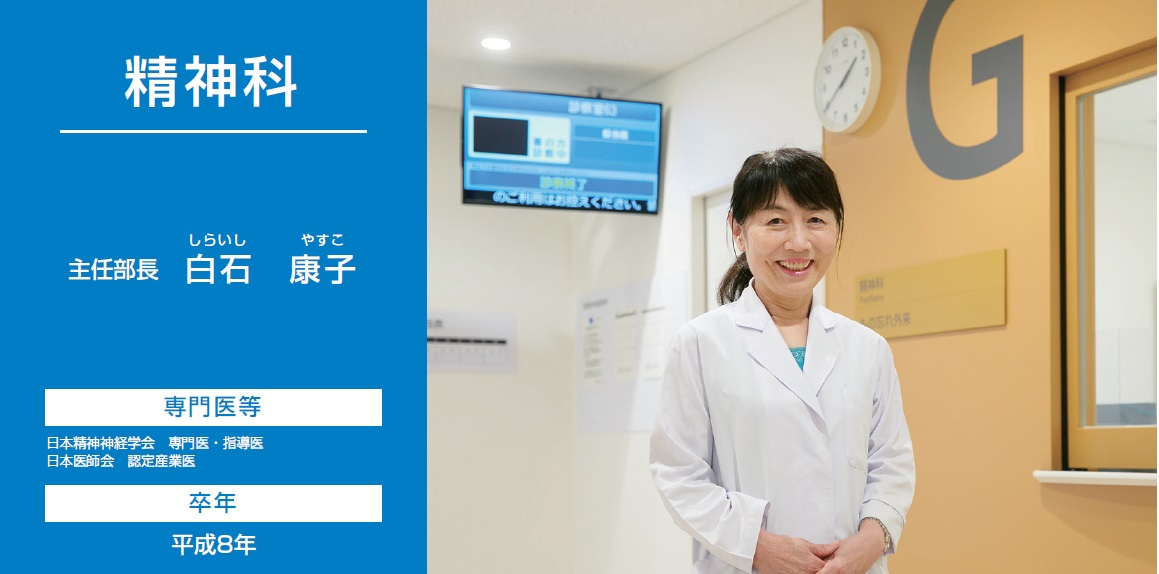 以上午前中の精神科外来と午後からの他科入院患者さんの精神面のケア(コンサルテーション・リエゾン精神医学)が主な業務としています。